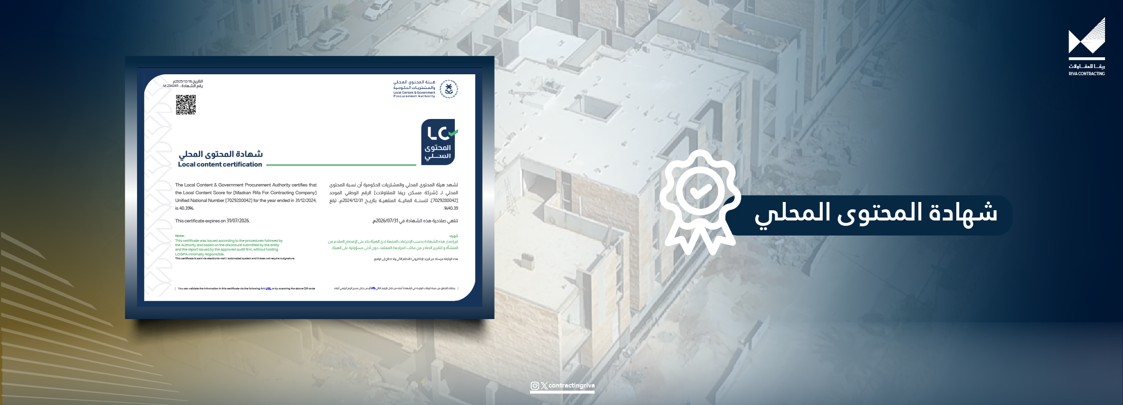 أعلنت شركة مسكن ريفا للمقاولات عن حصولها على شهادة المحتوى المحلي الصادرة من هيئة المحتوى المحلي والمشتريات الحكومية، وذلك تأكيدًا لالتزام الشركة بدعم الاقتصاد الوطني وتعزيز …